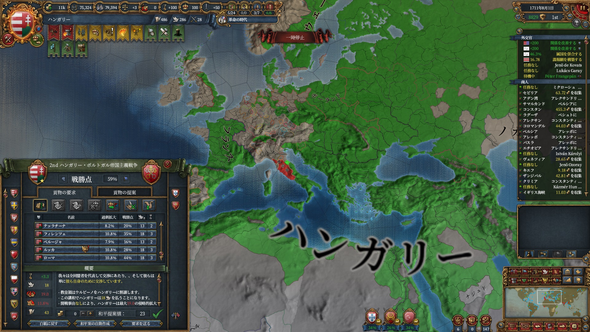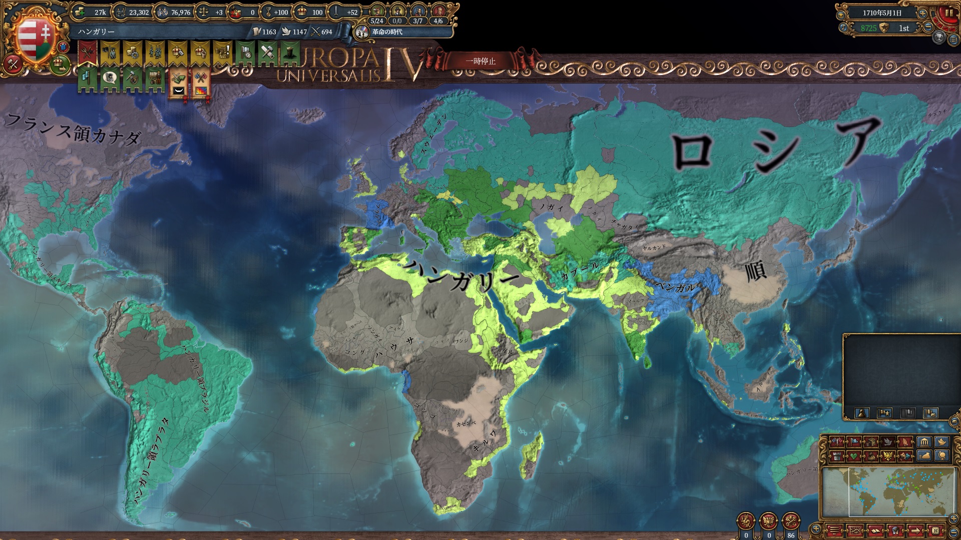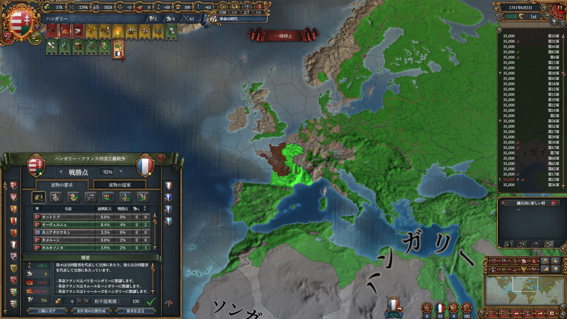 ようやく陸軍1000kが(MP的に)雇えるようになりました。軍事覇権を宣言します。