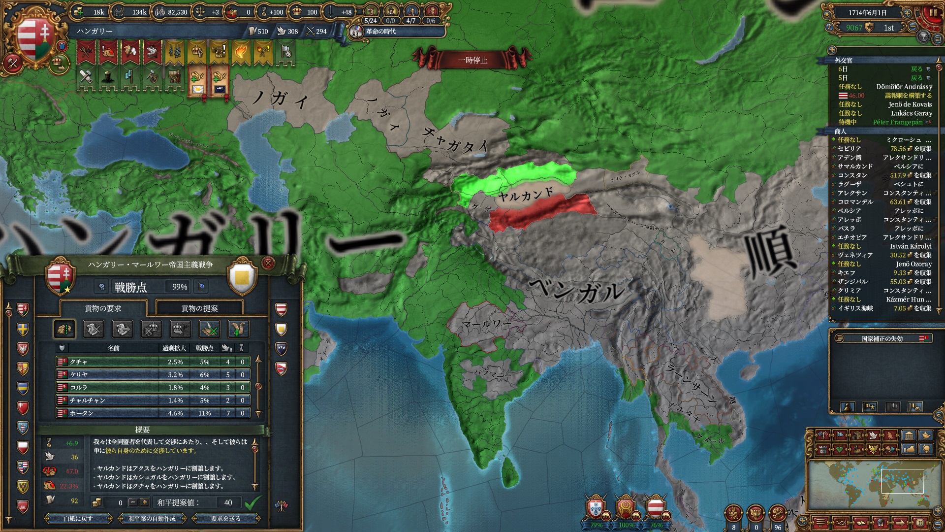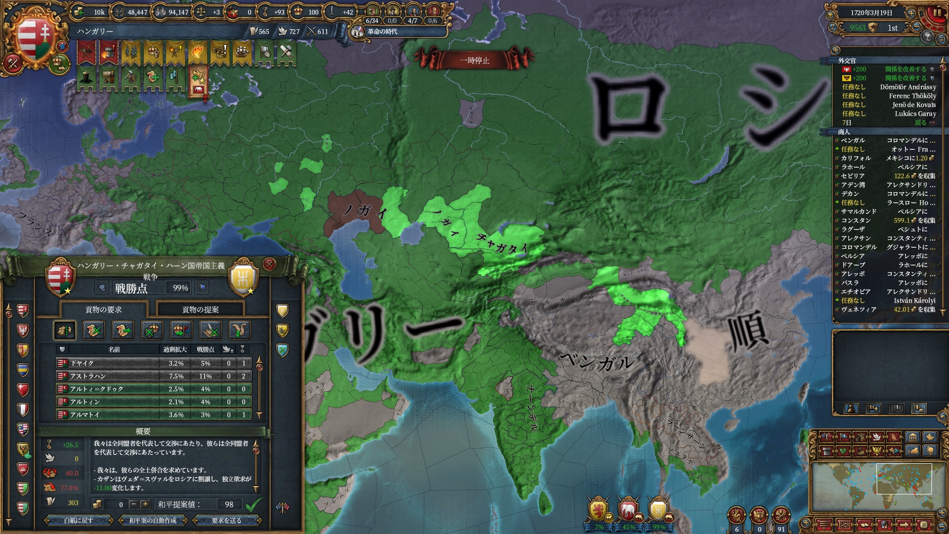 アユタヤ戦はあまり点数が伸びておらず、もう暫くかかりそうだったためベンガルと同盟だったチャガダイを殴っておきます。