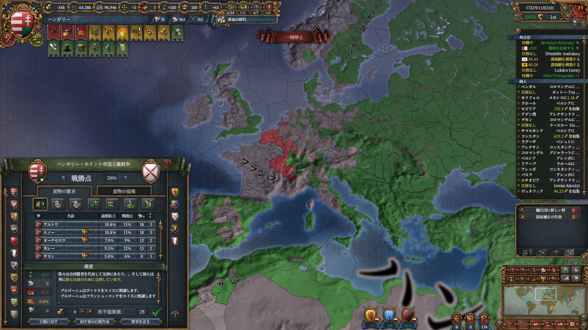 フランスとの同盟はこの後の覇権と併せてもう長くは持ちませんが、いけるところまで引っ張ります。