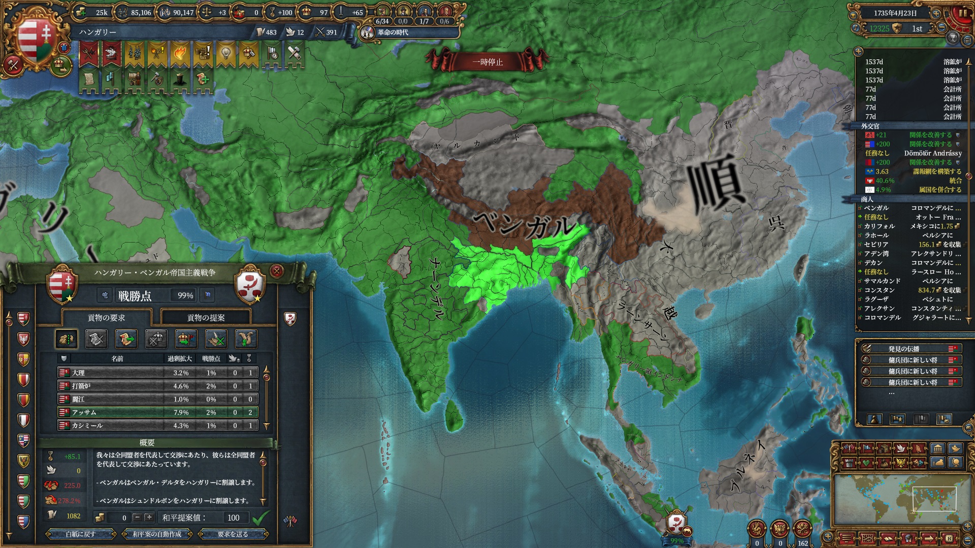 それなりな同盟関係・軍量なため少し手間ですがベンガル戦開幕。