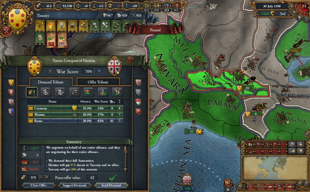 しかしMorale問題は解消。妙に発展を遂げている小国Mantuaを攻める。