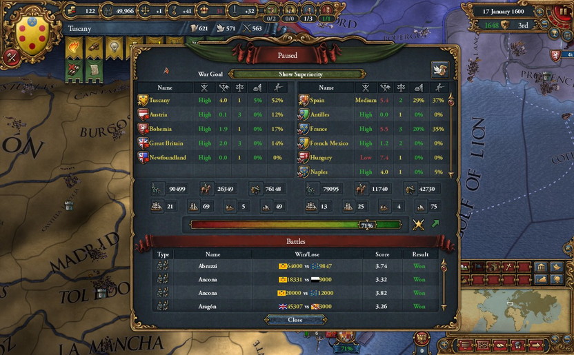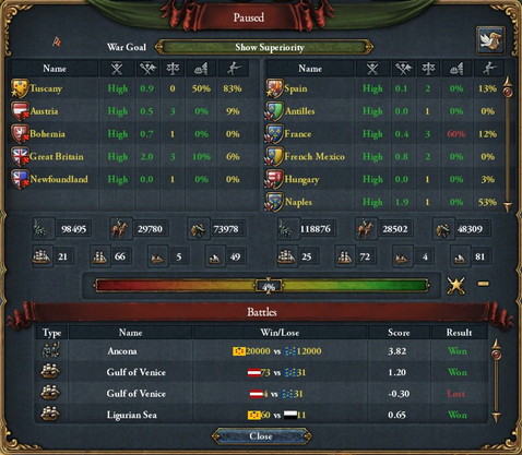 Spain・France・Naplesなどが主柱。戦力比が酷い。