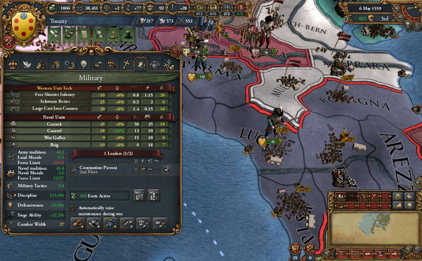 これらの戦闘中のこと。Tuscany軍に違和感を覚える。妙にMoraleが低い。