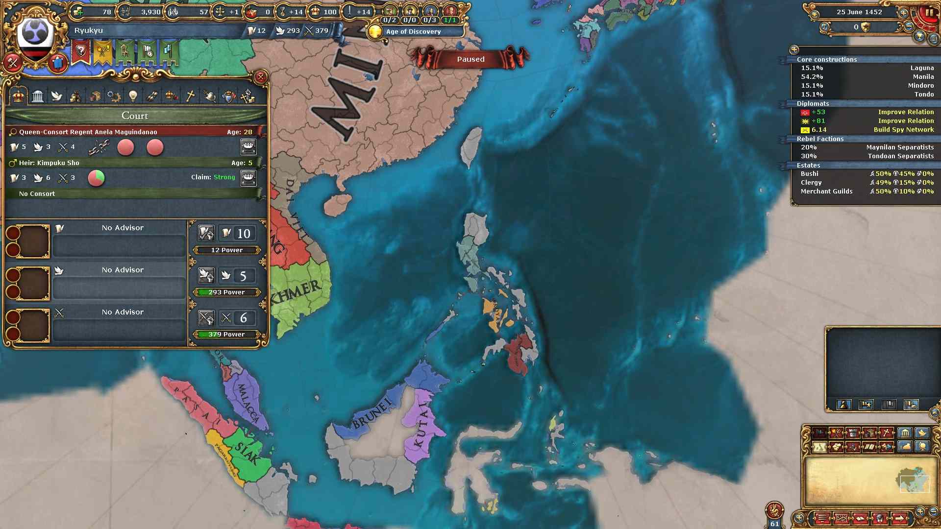 初期君主よりかなり有能なQueen Consortとなり俄然やる気になります。