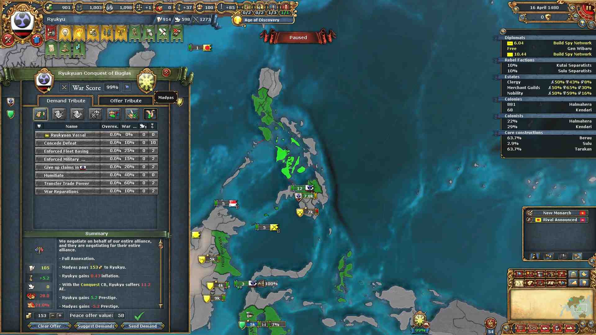 またTondo戦後しばらくは君主点を貯める期間になります。