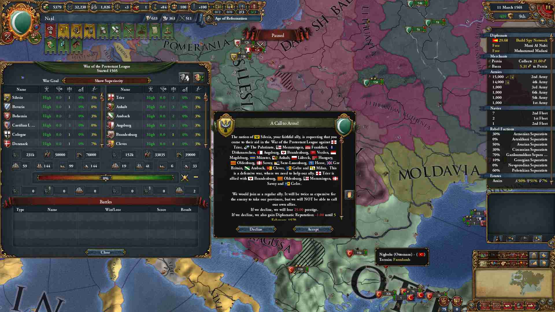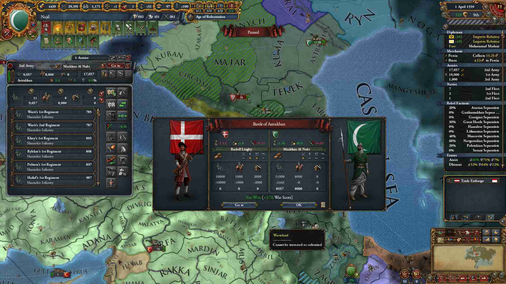 1556年4月 Denmarkをライバル指定(陸軍戦力は-32%といつのまにかNajdが上回っていた)