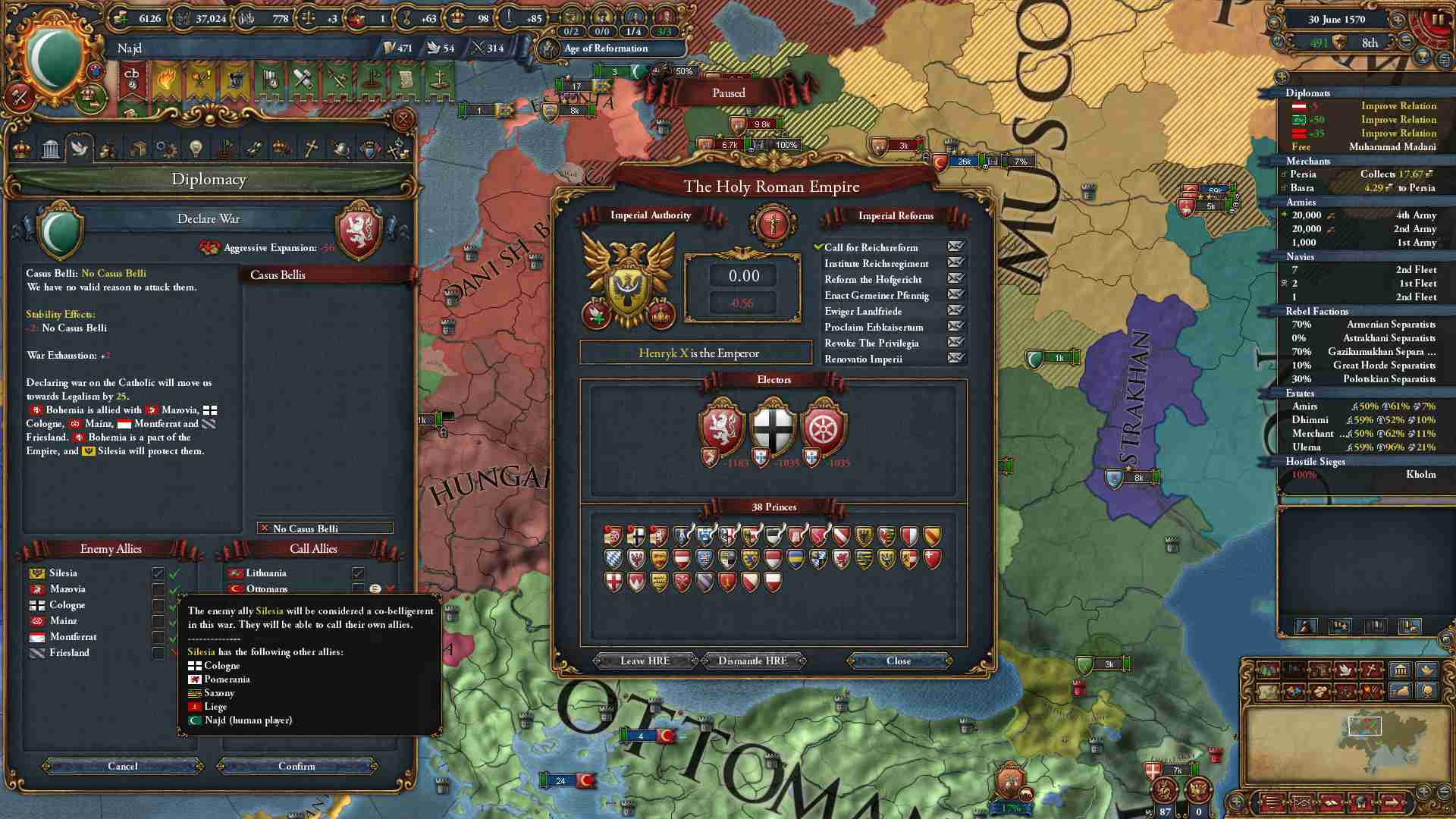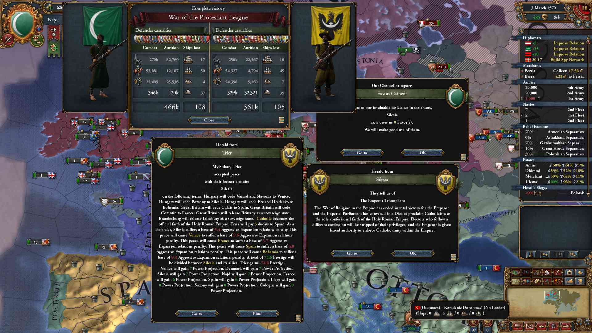 宗教戦争終了。多大な犠牲(Najdの犠牲は5k)の果てに皇帝が勝利し、カソリックがHREの公式宗教になった
