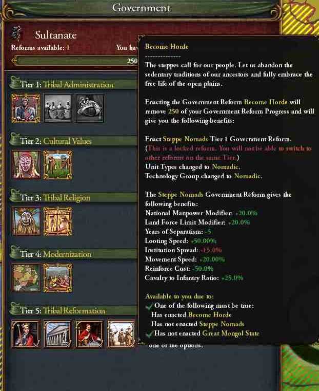 部族連合→草原の遊牧民に政体を変更すると現在の階級が廃止され、"部族"階級のみになる