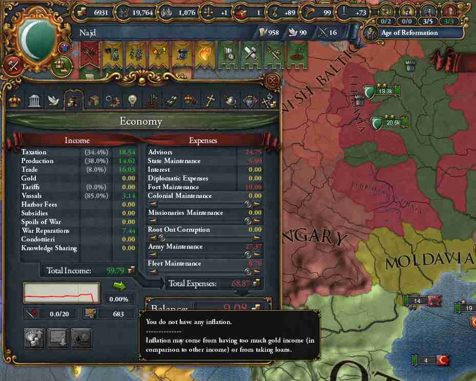 やっとのことでインフレ率が6%弱まで下がってきたので統治点を使用して0%まで削減し