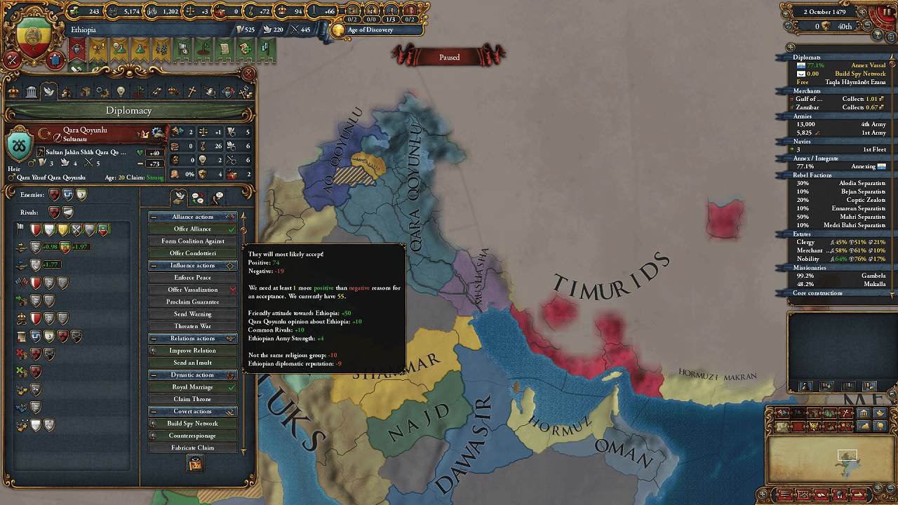 Damot併合で空いた外交枠はQara_Qoyunluとの同盟に使用