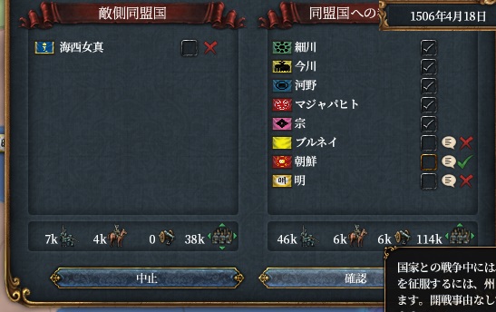 今回は明や朝鮮との同盟が機能しており、絶対に戦争は仕掛けられない自信があっての行動