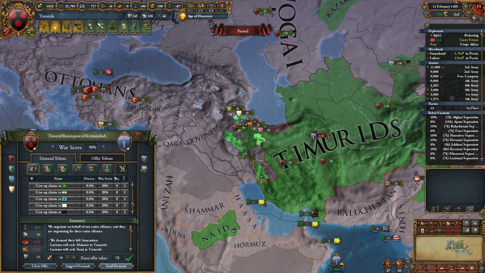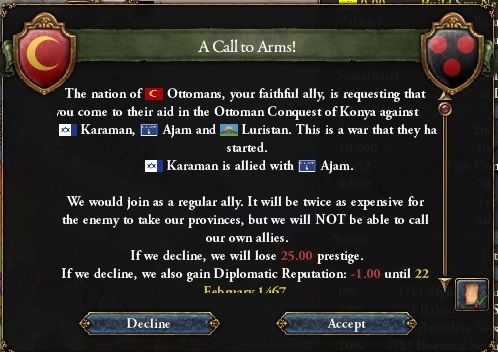 黒羊朝との同盟ができ次第、土地約束でアジャム戦に呼びます。