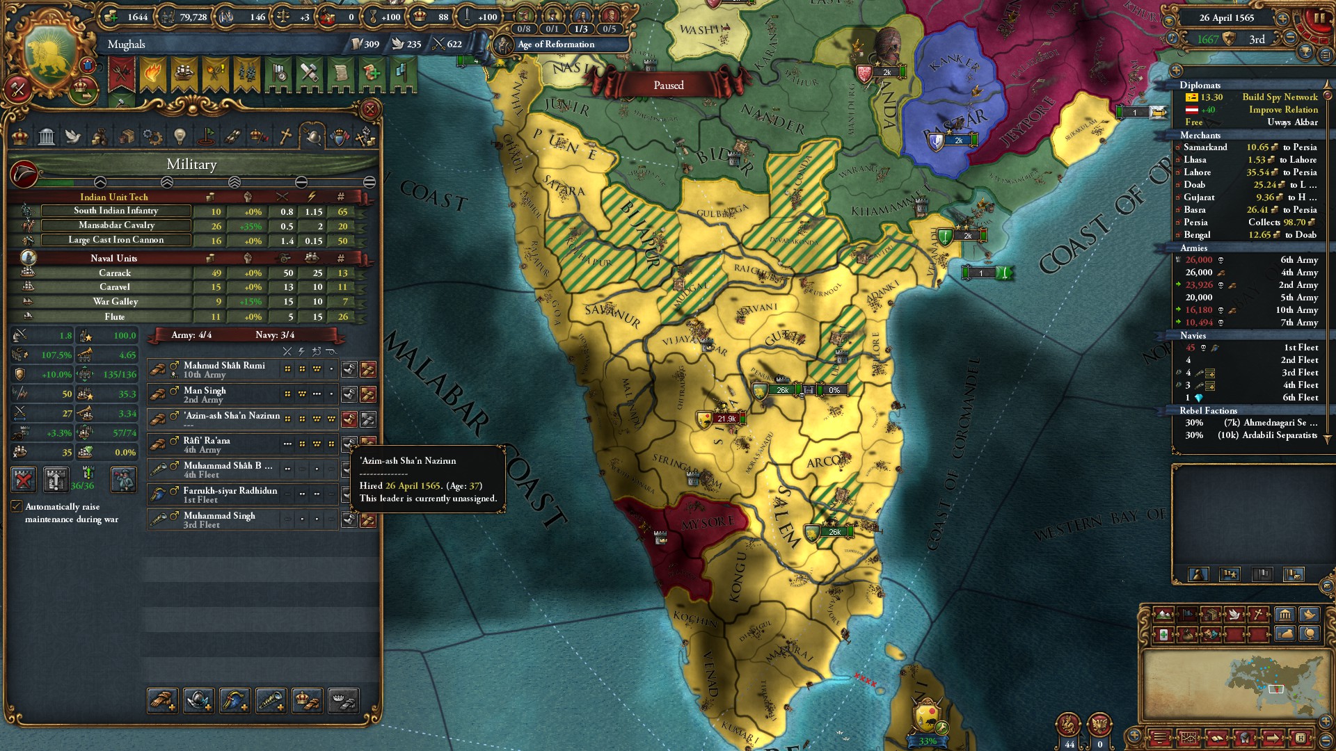 一方、ムガルも包囲網を組まれ始めましたが、大国はいません。
