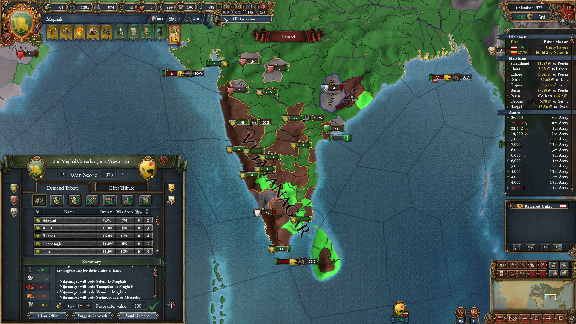 第2次グジャラート戦終結。ミッションに必要な領土を中心に割譲させました。