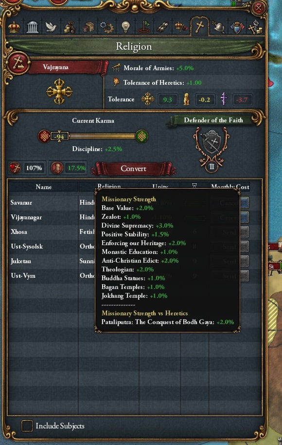 国教寛容度+1のディシジョンを選択。反乱が起きにくくなりました。