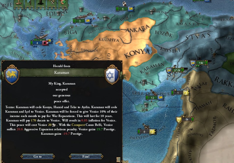 マムルークを叩いてアレクサンドリアノードの交易中心を奪いつつ、シリアを属国解放したり(1581年)