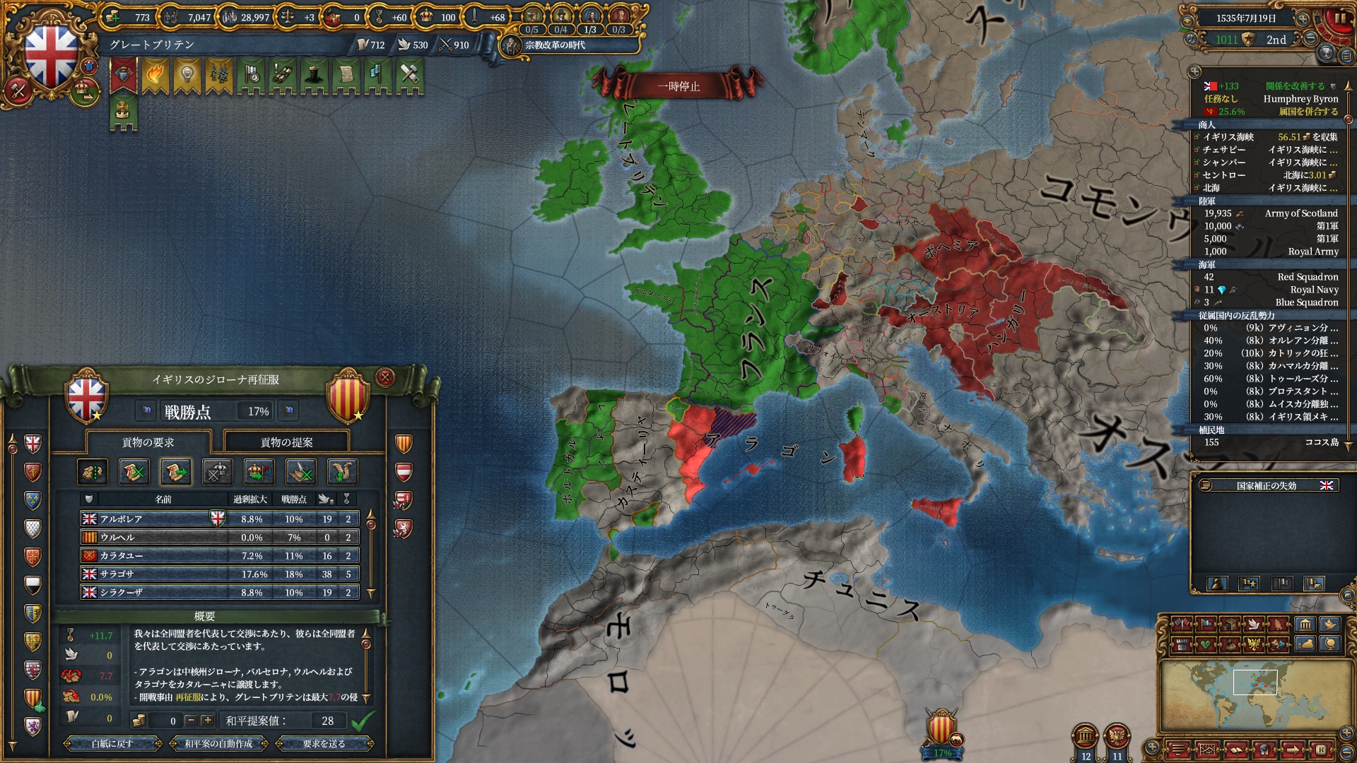 属国や植民地国家の改宗をなるべく急ぎ、最低限LV2の戦争疲弊減少が欲しいところです。