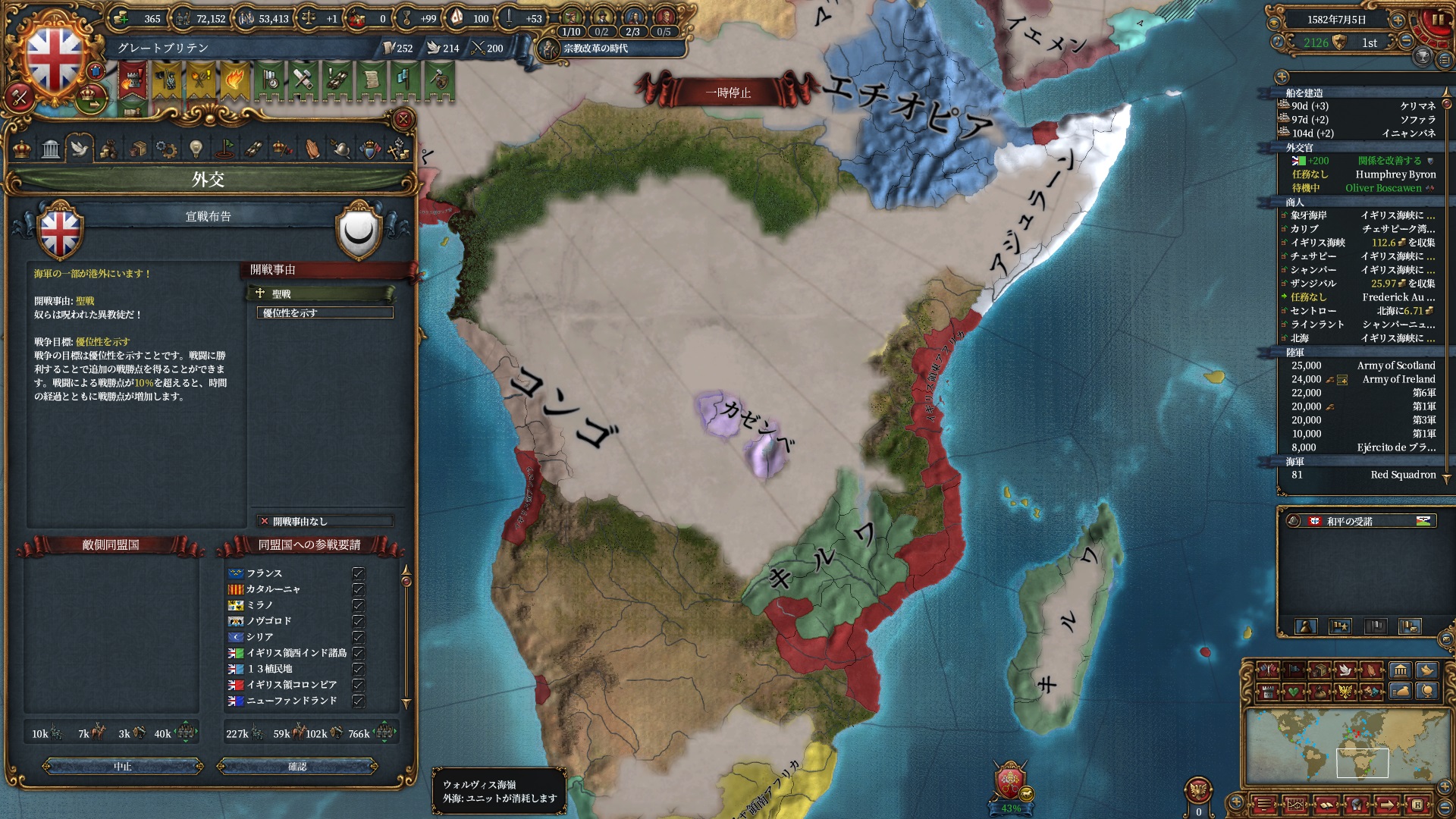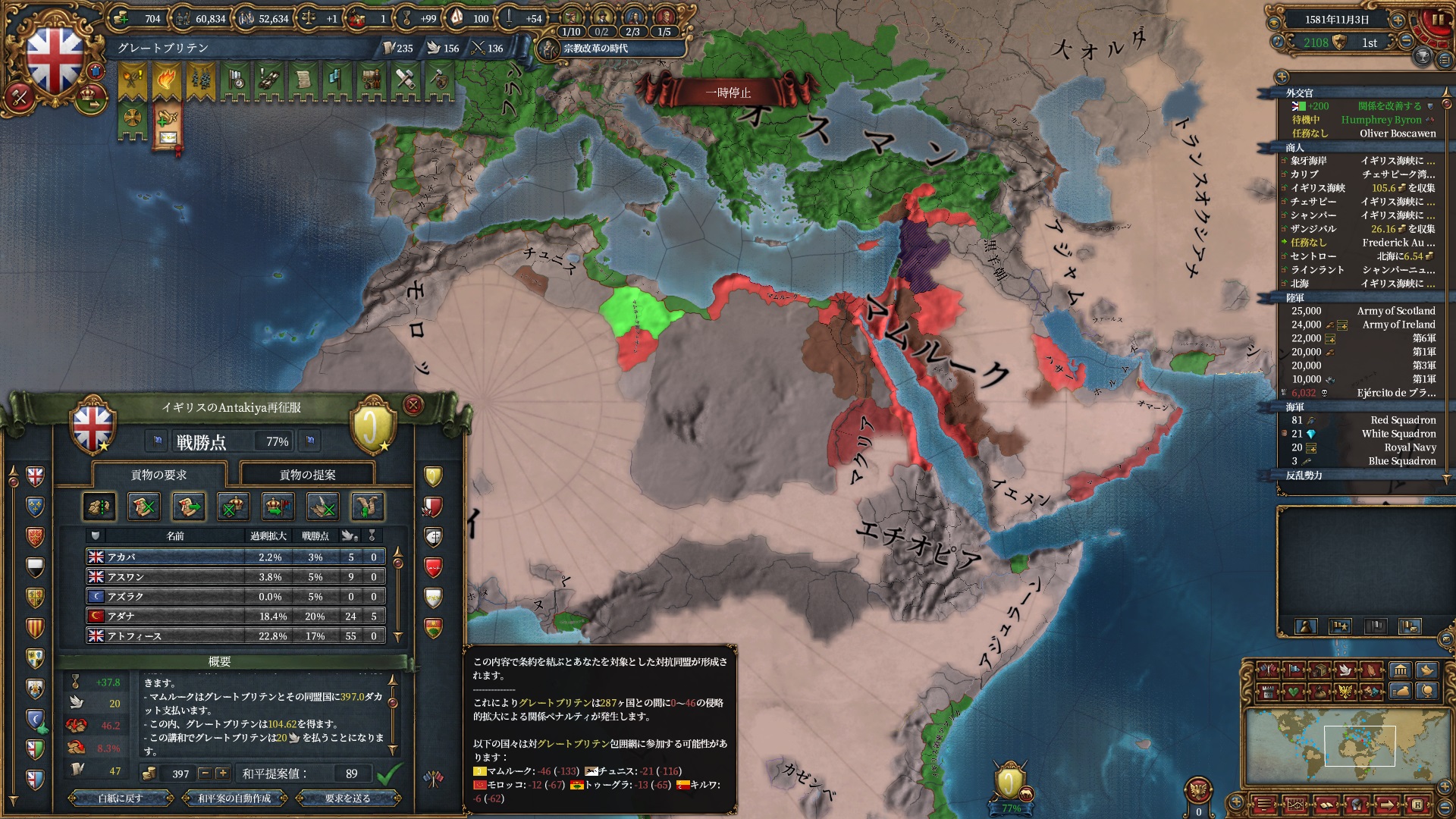 欧州方面は大量の属国とオスマンに任せて大丈夫なので、本国軍はこちらで頑張って貰います。