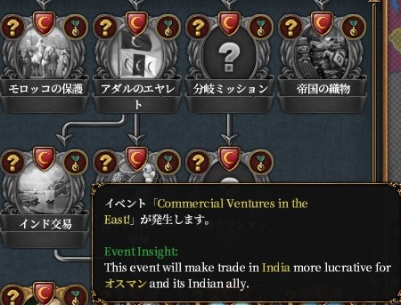 最後のミッションでは、織物系の交易品ボーナスを受け取り、対象産物の領有州の交易品生産補正+10%されます。