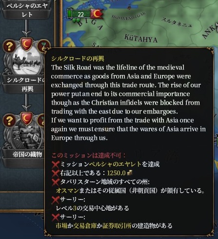 それに続くミッションではペルシア20州(直轄)保有でホラーサーン地方とコア化/併合コスト-5%が50年貰えます。永続ならなぁ。