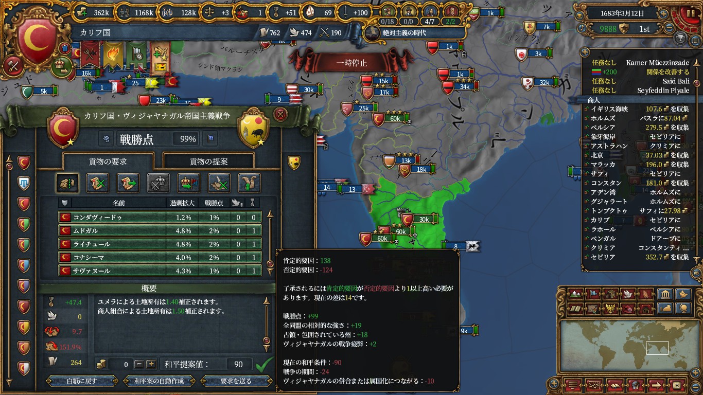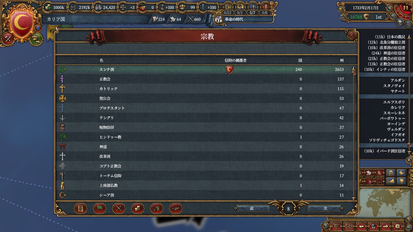 シク教プロビが残っていれば、WC達成後にシク化してオスマン政府外して、再度イスラム化して神権化すればさらに宣教師数と布教強度を盛ることができました。