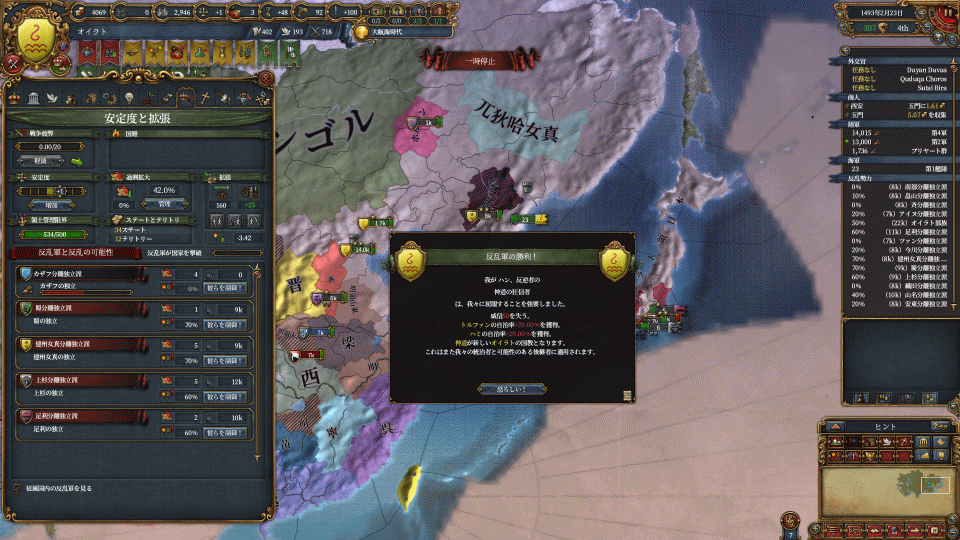 モンゴル併合してミッションが進むようになったら