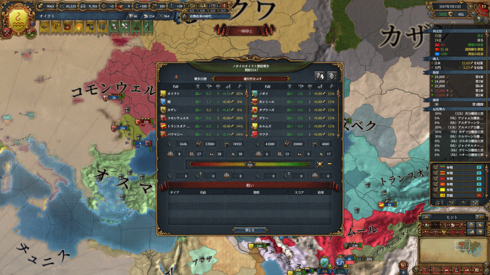 イラン方面を突っ切ってなんとかオスマン同盟国の白羊朝に隣接し、非共戦国でオスマンと戦争開始すると、