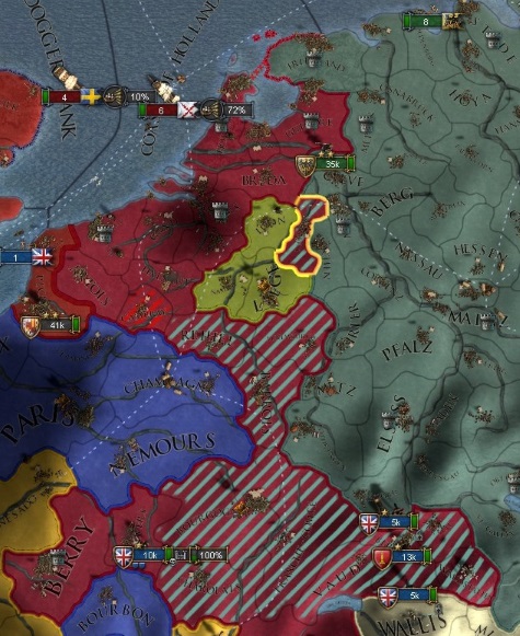せいぜいブルゴーニュを虐めてベルギー解放しつつ、フランク王国目指したり