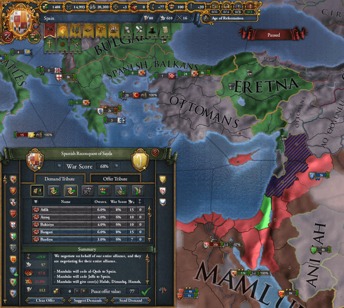 第二次オスマン戦で手に入れた州からからエレトナを属国解放し、再征服CBを用いて宣戦しました。