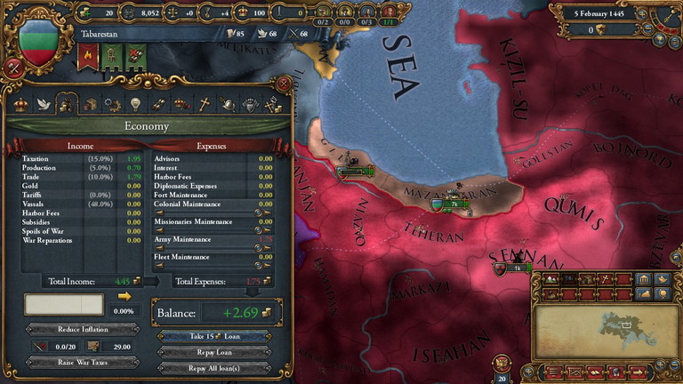 行動に次ぐ行動。時は1543年。なのに未だ我々はTabarestan。誇り高きPersiaを襲名するための土地は、とっくに押さえているのですが、Persiaとかいう益体もない国が存続しているために国家変態が果たせておりません。
