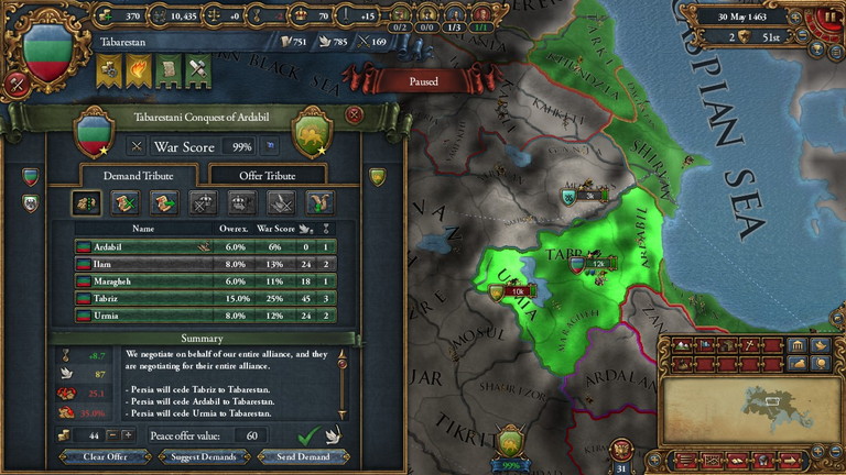 解放でPersiaを属国として設け、他国のSeparatistで領土を広げ、最後に併合。