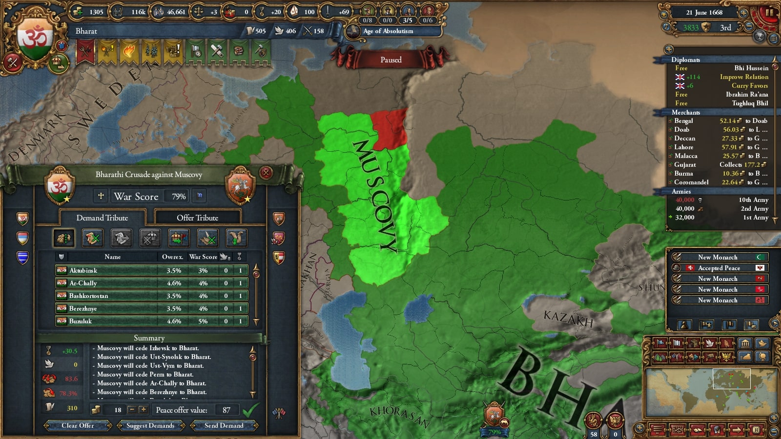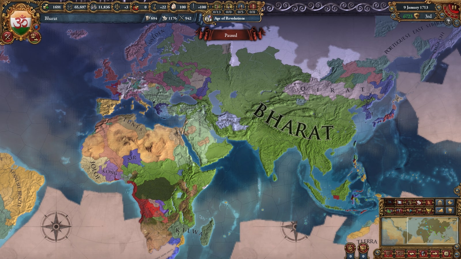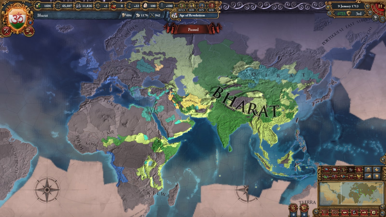 1672年にバーラト・シク連邦の統治者に就いたKrishna I Kohkkarは、長期的な征服を目標とし、しばらく領土拡大を停止し、この国の歳入構造を大きく変える大改革を行いました。国内の過激派貴族はこの決断に対し弱気であると反発しますが、結果的にバーラトは1Mの軍隊を維持できるようになり、のちの統治者や専門家によって隠れた名君と評価されました。