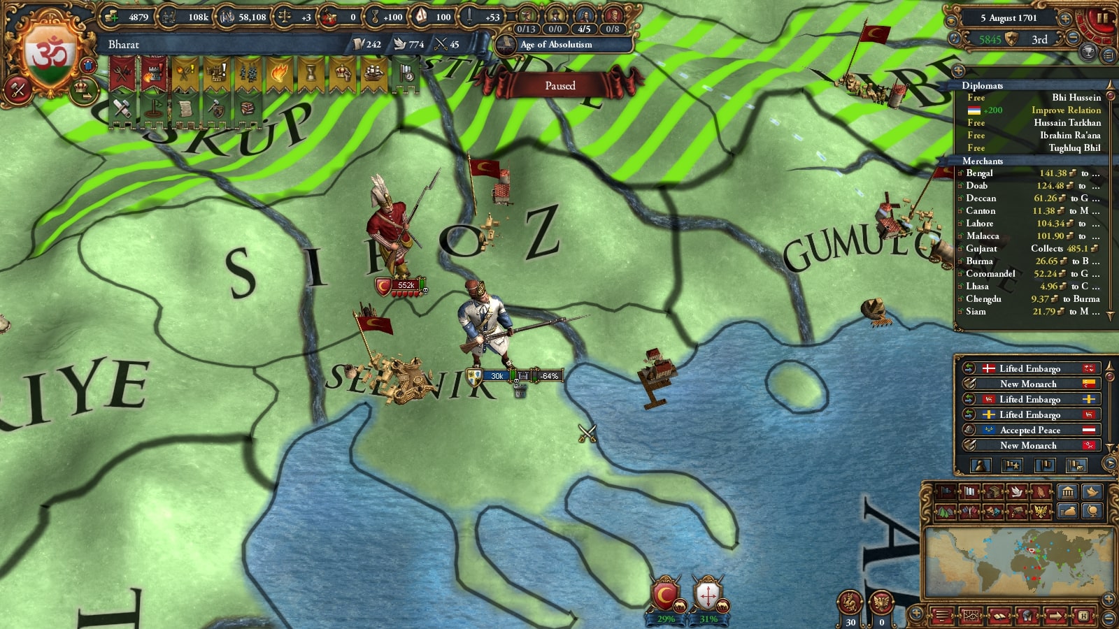 最初にオスマンと同盟した時はオスマンのライバル指定が届かない範囲まで先に逃走しようと皮算用していたのですが、皮算用以外の何物でもありませんでした。