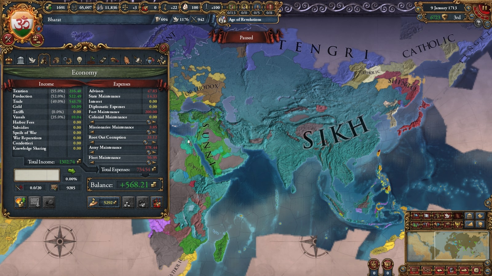 ちなみにシク教は月間統治点(外交点/軍事点)+19を出せる宗教の一つです。