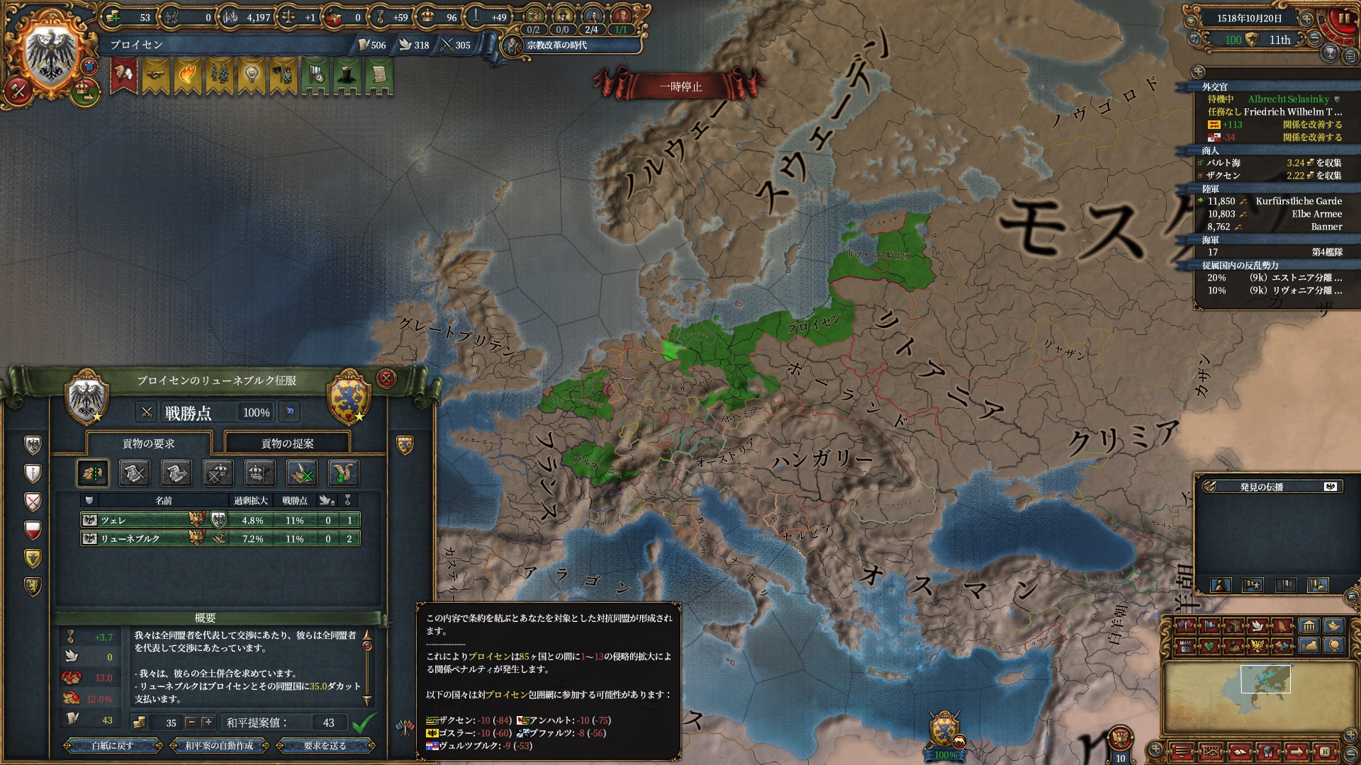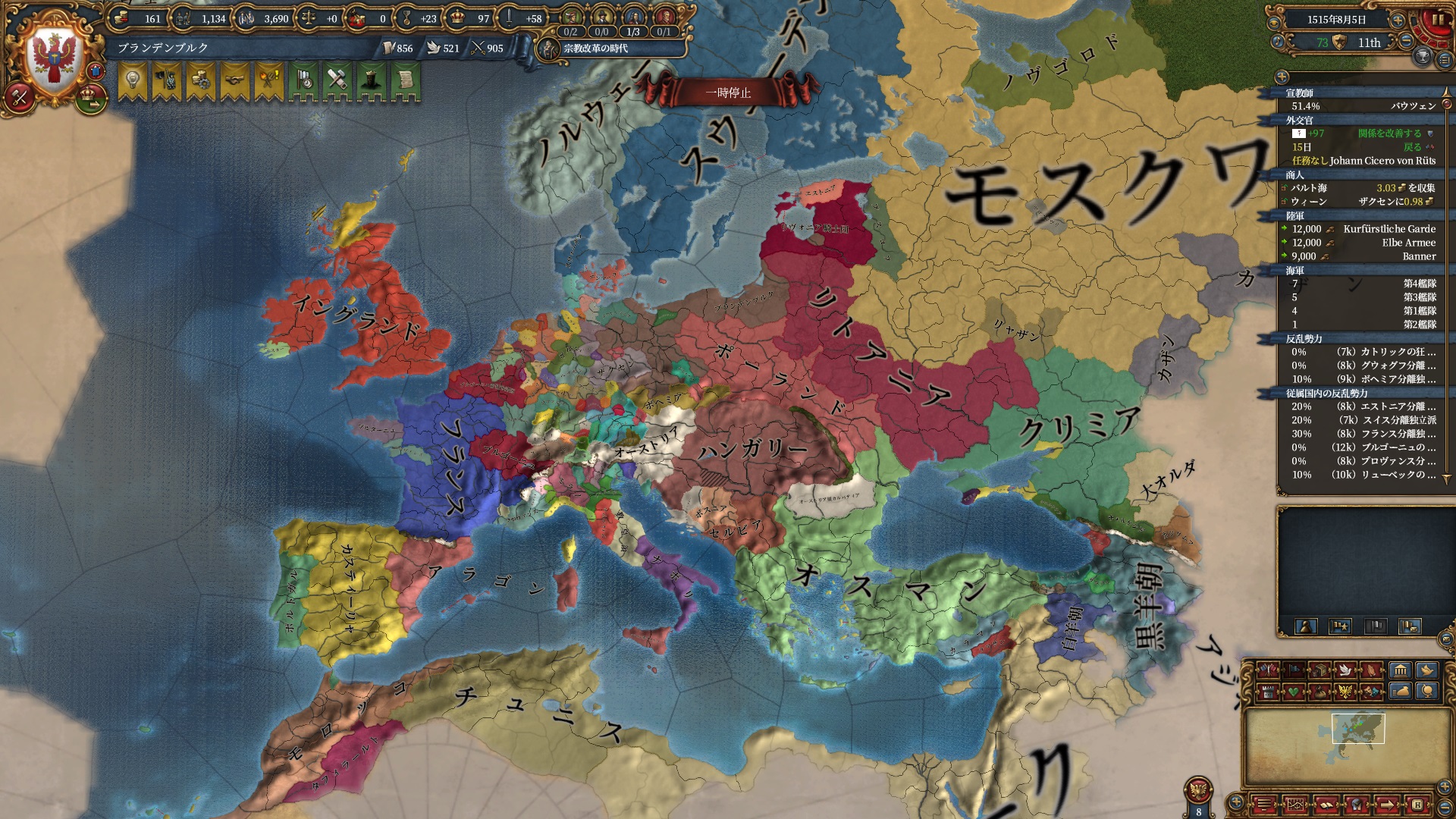 一応プロテスタントや改革派に宗教が分かれ始めたので、同宗教AE補正が薄まり始めています。