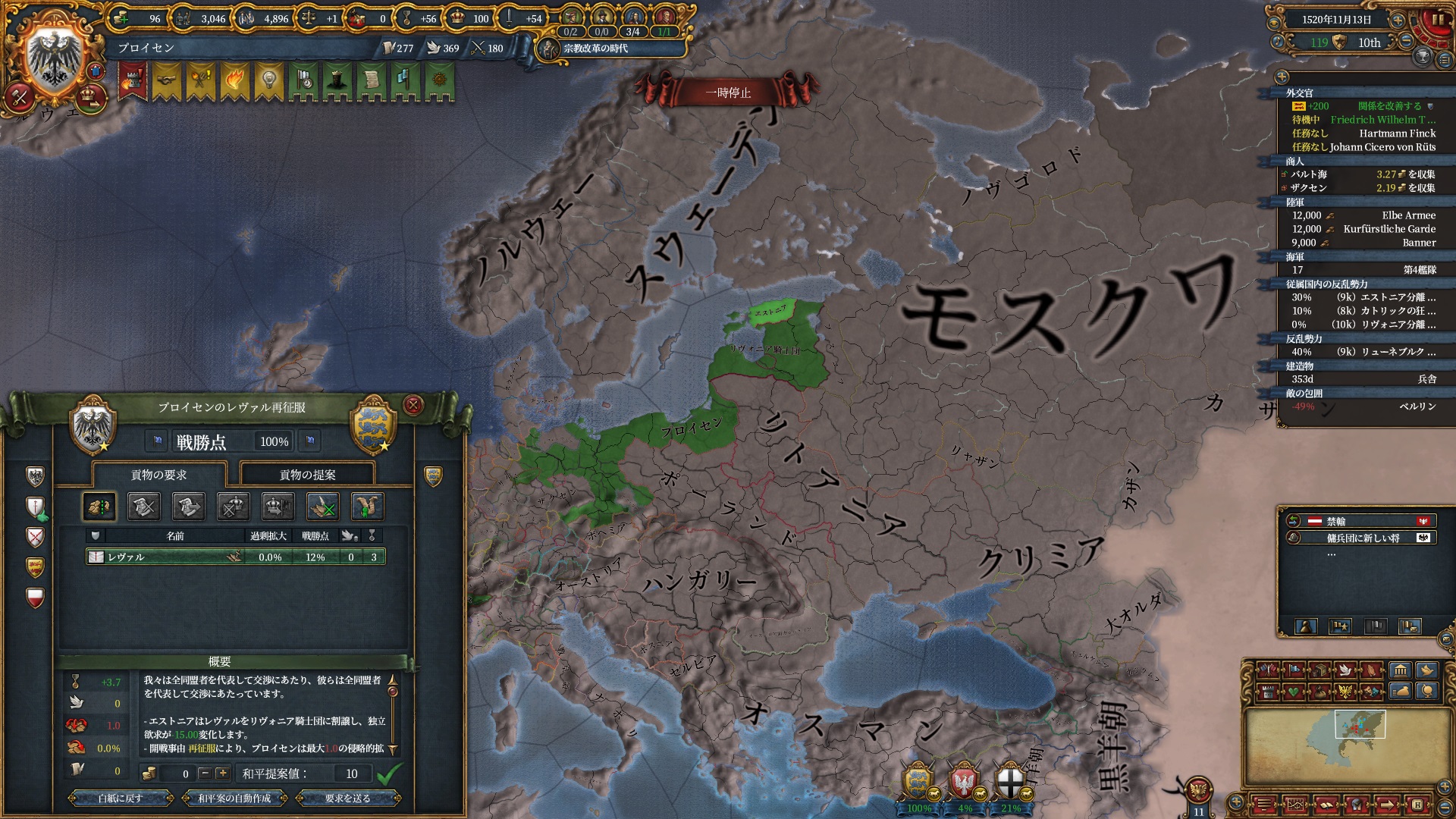 ポーランドその他同盟国はモスクワに適当に任せつつ、自身はそろそろコア期限が切れそうなエストニアを攻めてます。