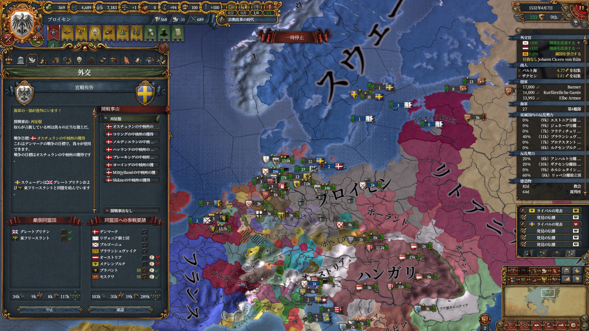 同盟国にブラウンシュヴァイクの再征服をお願いしつつ、オーストリアと既に殴り合って大変な事になってるポーランド戦に便乗。