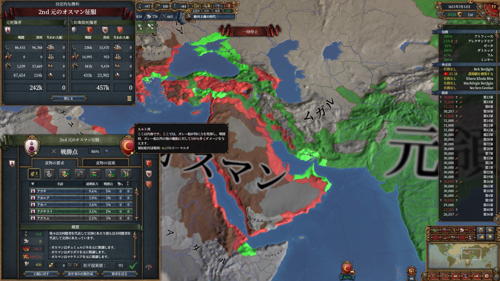 ロシア戦の間に過去2回のオスマンのコア化終わったので停戦破棄して3回戦目に突入しました