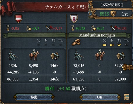 これにてオイラトミッションの州戦勝点コスト-15%達成です