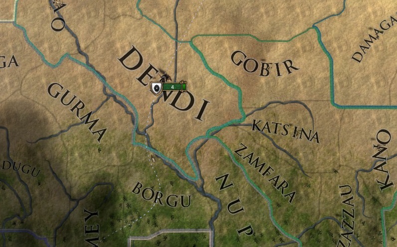 カービフォ率いるソンガイ帝国とカネム・ボルム帝国軍は首都ボルノで激突、結果はソンガイ軍の圧勝に終わった。カネム・ボルノの残存兵は密林地帯を経由しカノを攻略しようと考えた。しかし、諸族に襲われ全滅した。