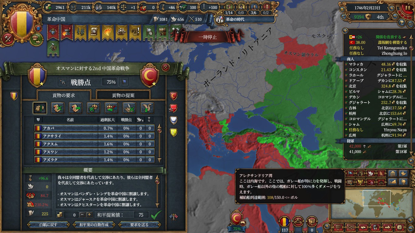 列強のイギリスやナポリと同盟しているせいで軍量が多く、なおかつオスマンと違い軍質も高いため厄介でした。
