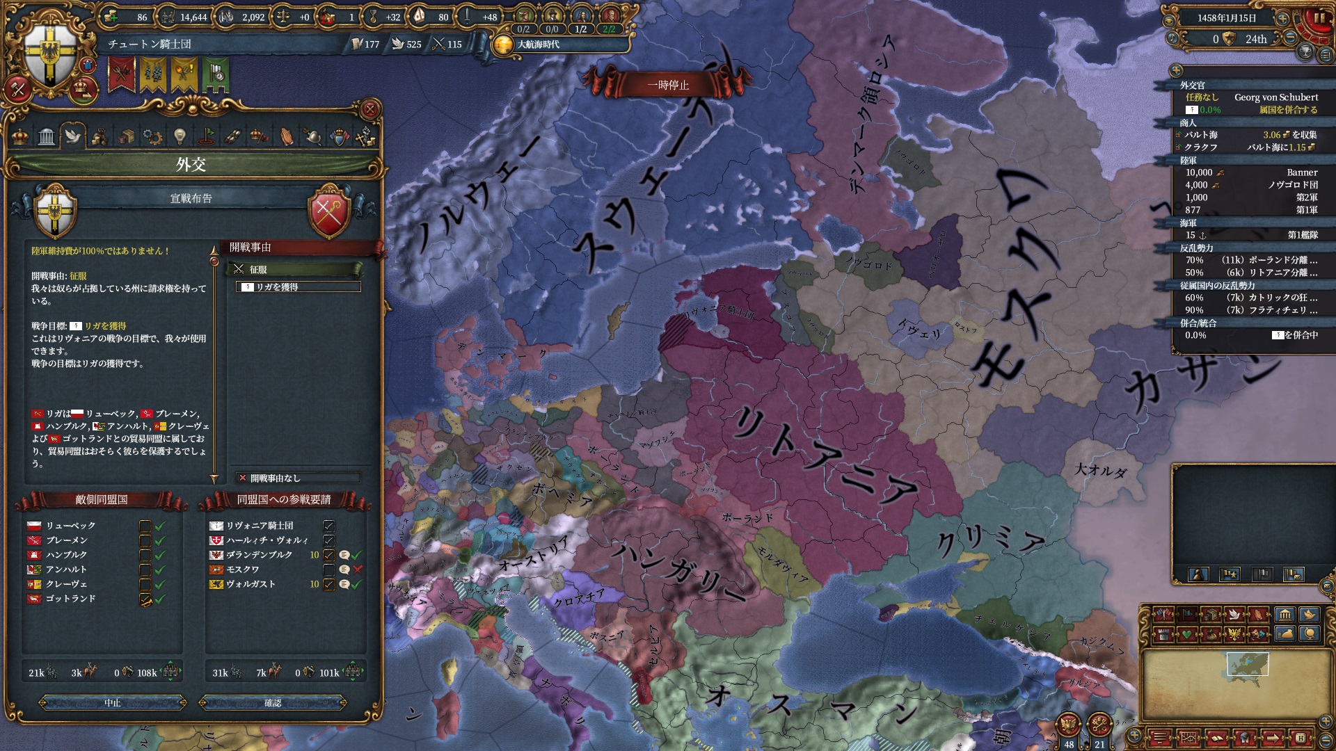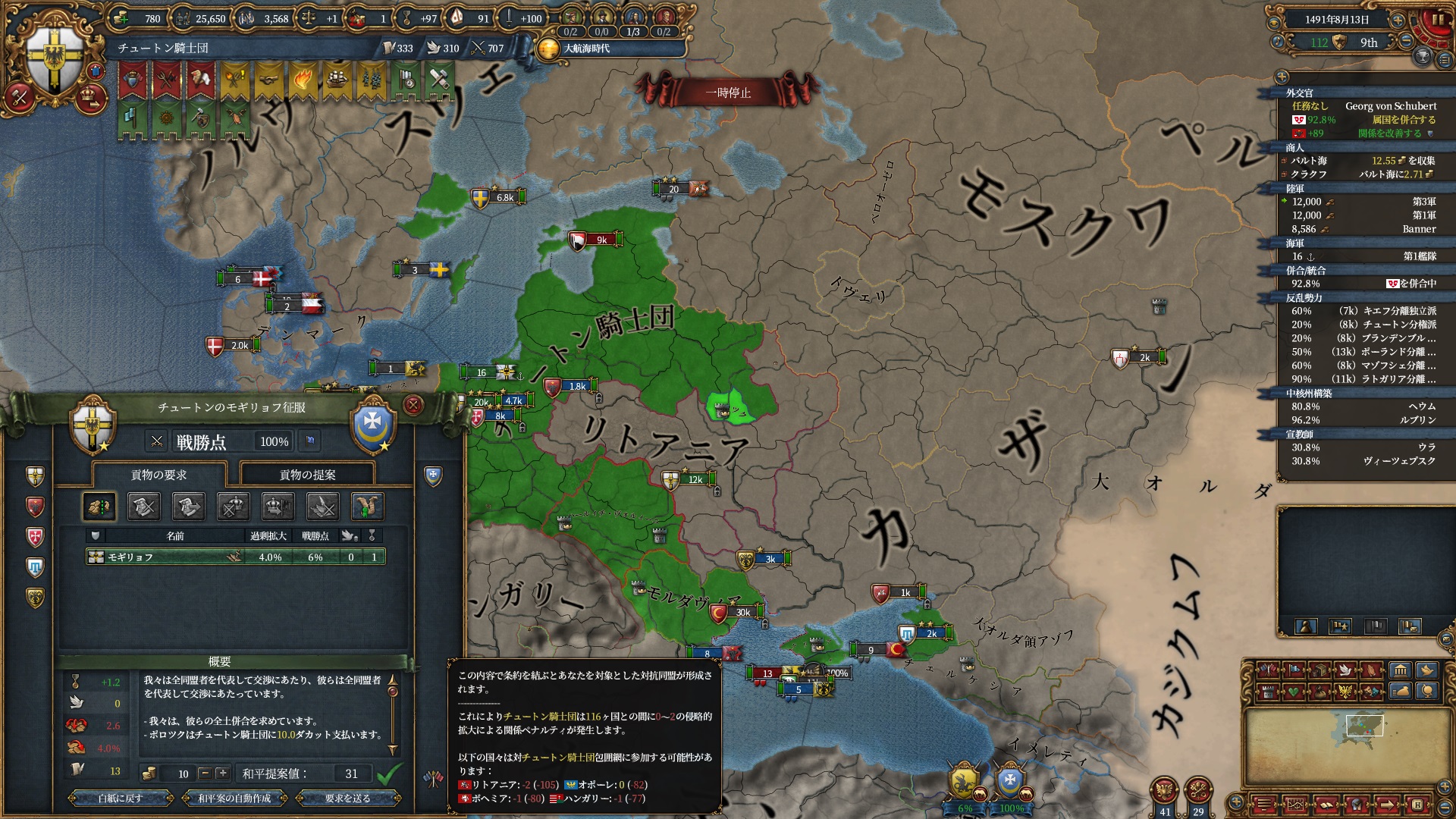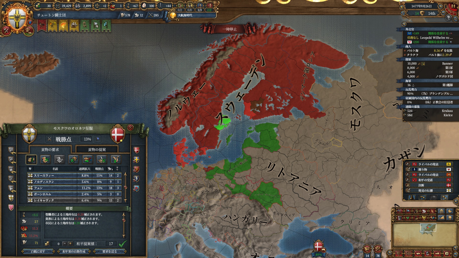 かといってヒストリカルライバルのポーランド属国化→再征服は非常にリスキーなので見届ける事ぐらいしか出来ません・・・