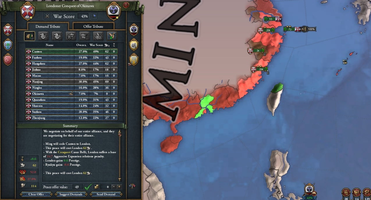 1498年、大きな陸戦は1度きりのまま目標4つ目となるCantonの獲得に成功します。