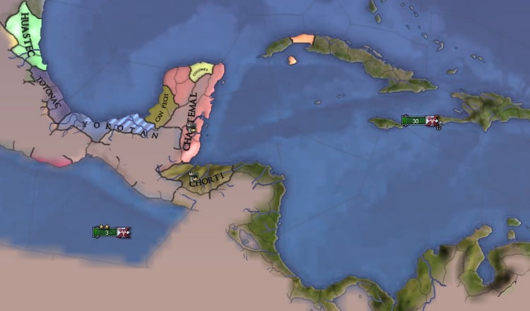 一方でThe Kurilsを放棄させた植民者をメソアメリカ征服拠点Havanaに派遣。1508年頃に日本から遠路遥々精鋭たちを送り込みます。