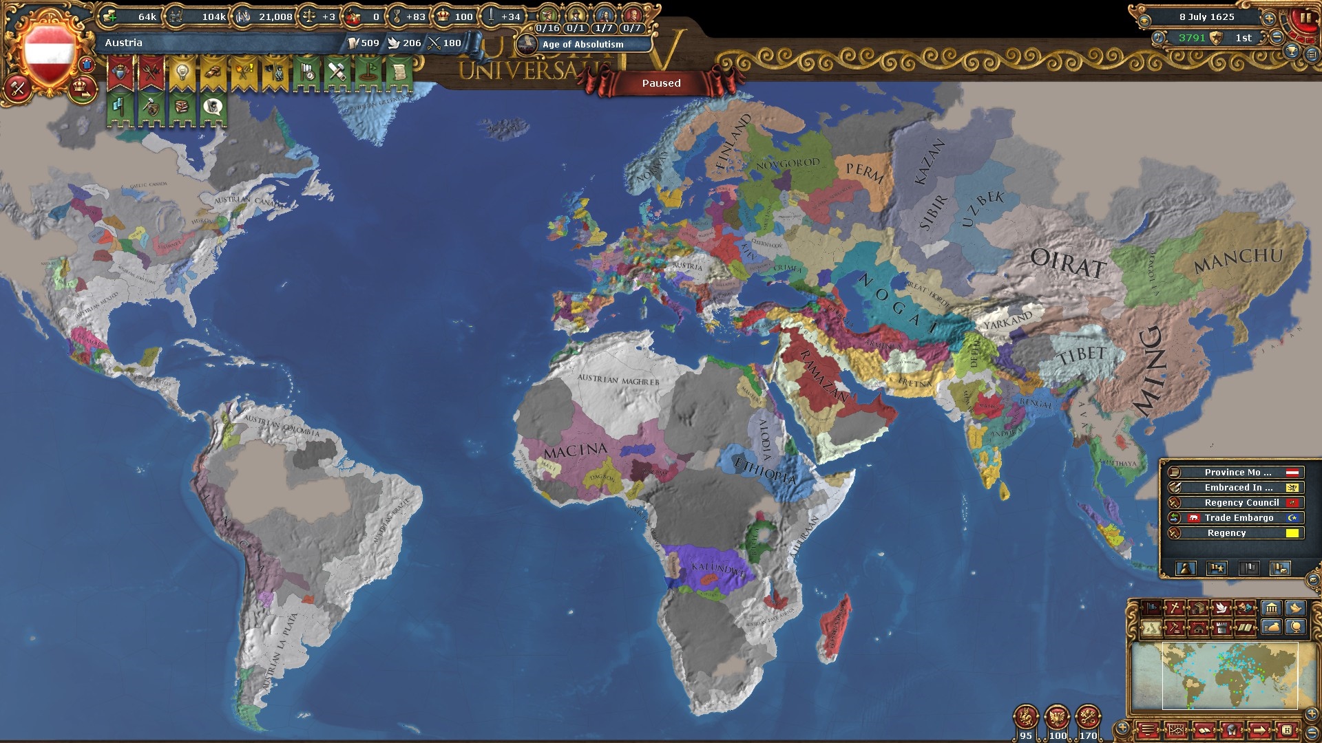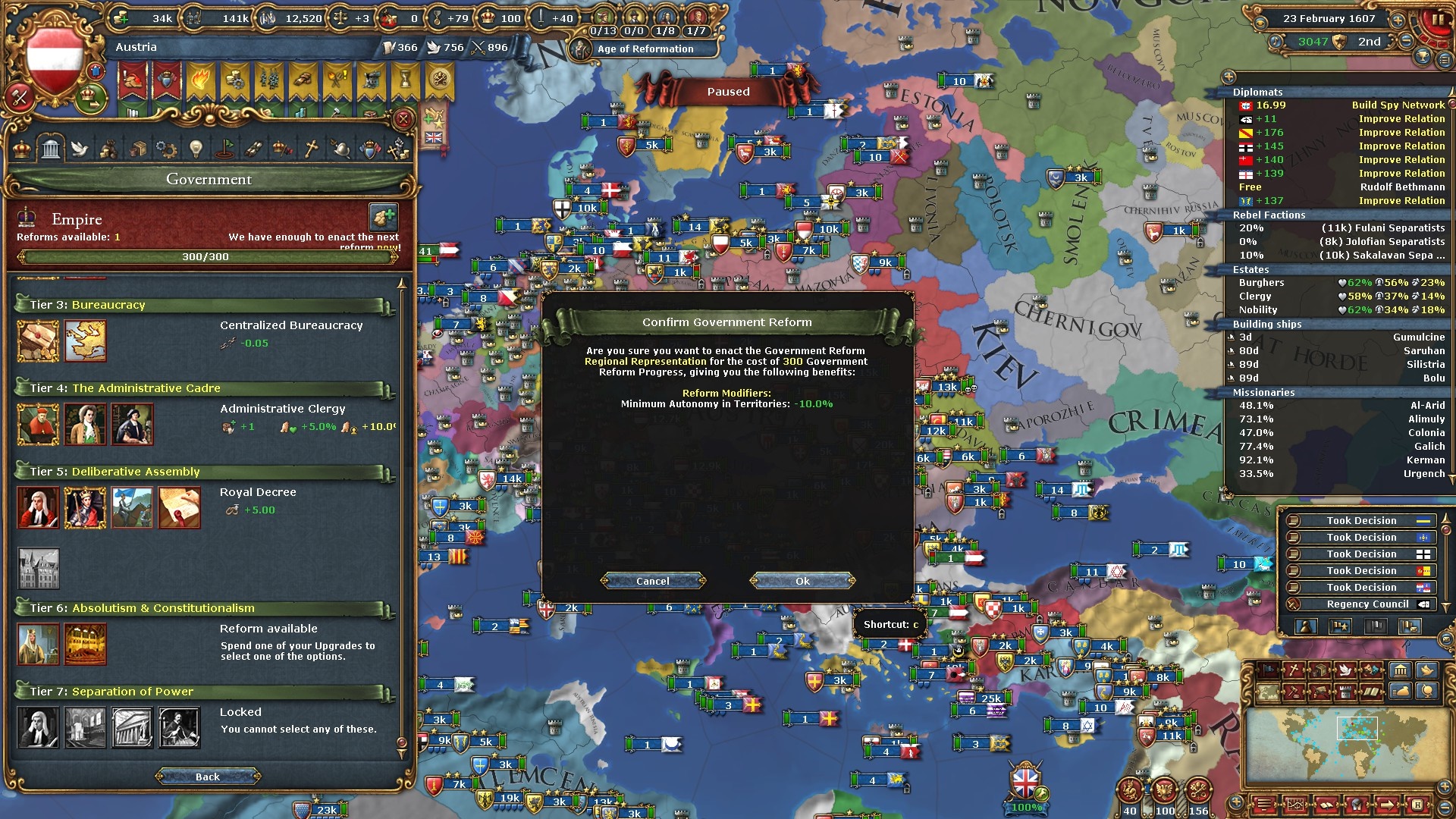 オスマンAARの時と違い神聖ローマ帝国ファンネルプレイでは、自国領を少なくできるので改革ポイントを稼ぐことが可能となります。