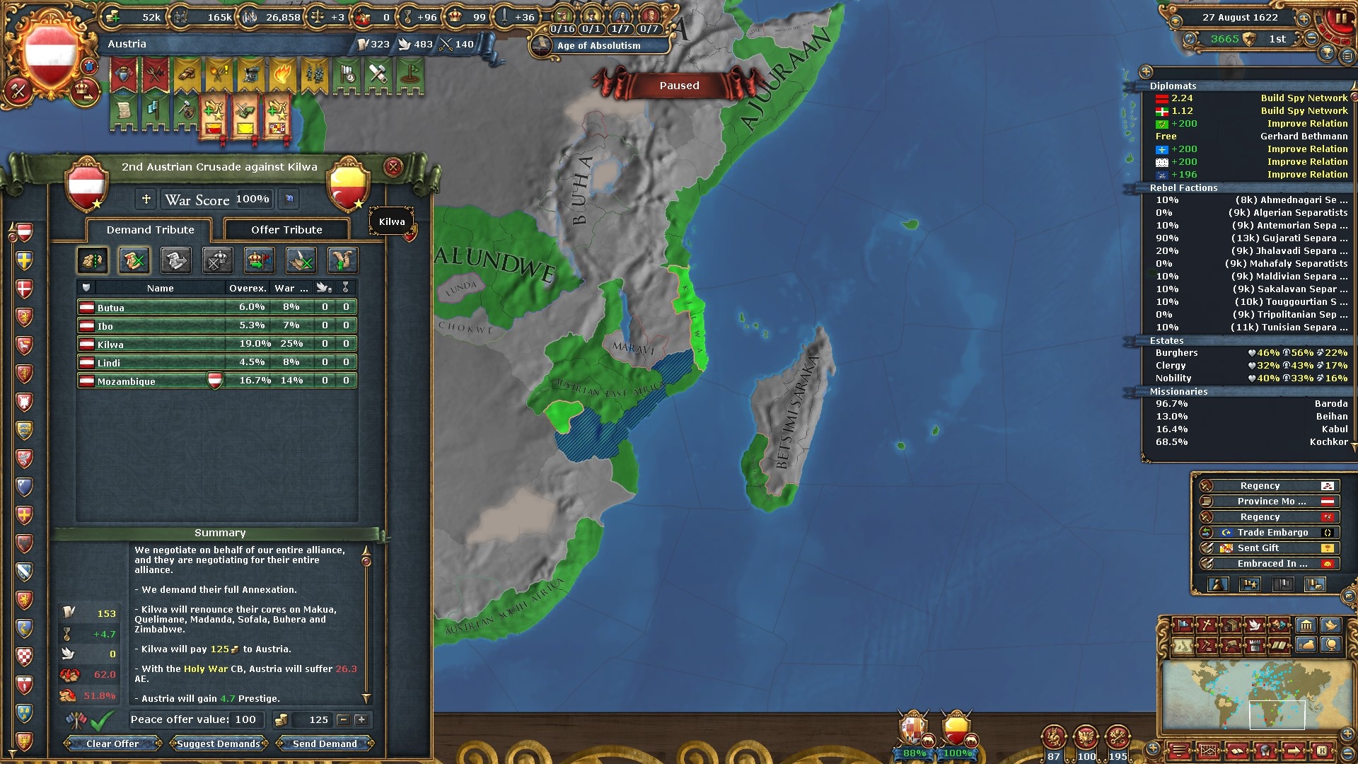 ポルトガル戦に付いてきたカルンドウェを武力属国化しました。