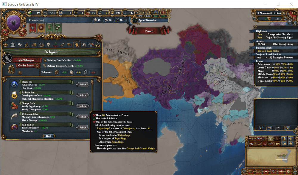 左にあるvizier swayは100になると大宰相にRajを乗っ取られますが、当面問題にならないので無視です。
