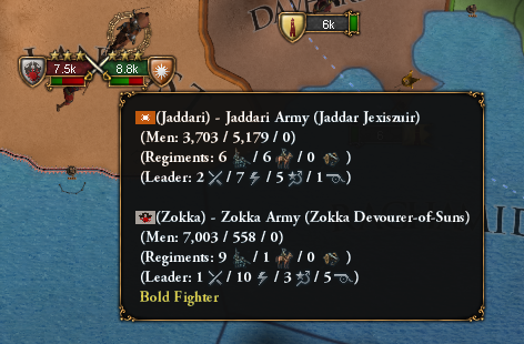 1446年11月、ゾッカがジャダーリに対して宣戦布告してきました。敵同盟国は参戦しませんが、それでも国力・軍量ともに勝る相手ですが……、