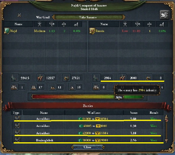 戦勝点もすでに58点ありますゆえ、そろそろ講和の時期かと愚考いたしまする。