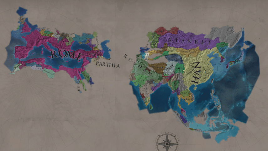 このModはゲーム本体にも増して勢力図の再現度が高く、国選択画面などは世界史教材にしてほしいくらいじゃ。じゃがまあ、二千年の時をカバーする中でこぼれ落ちるバグもある。まあそれも一つ一つぶっ飛んだ歴史を作るゆえ、面白みを増やしているともとれるのう。